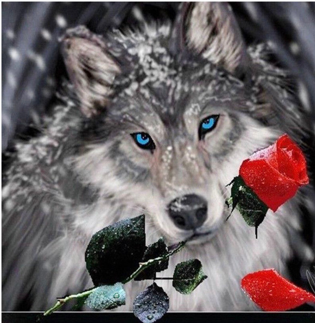 30 x 30 diamond painting full drill - wolf with rose HY731