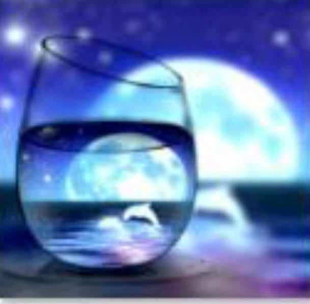 30 x 30 dolphins through a wine glass beach scene full round diamond painting