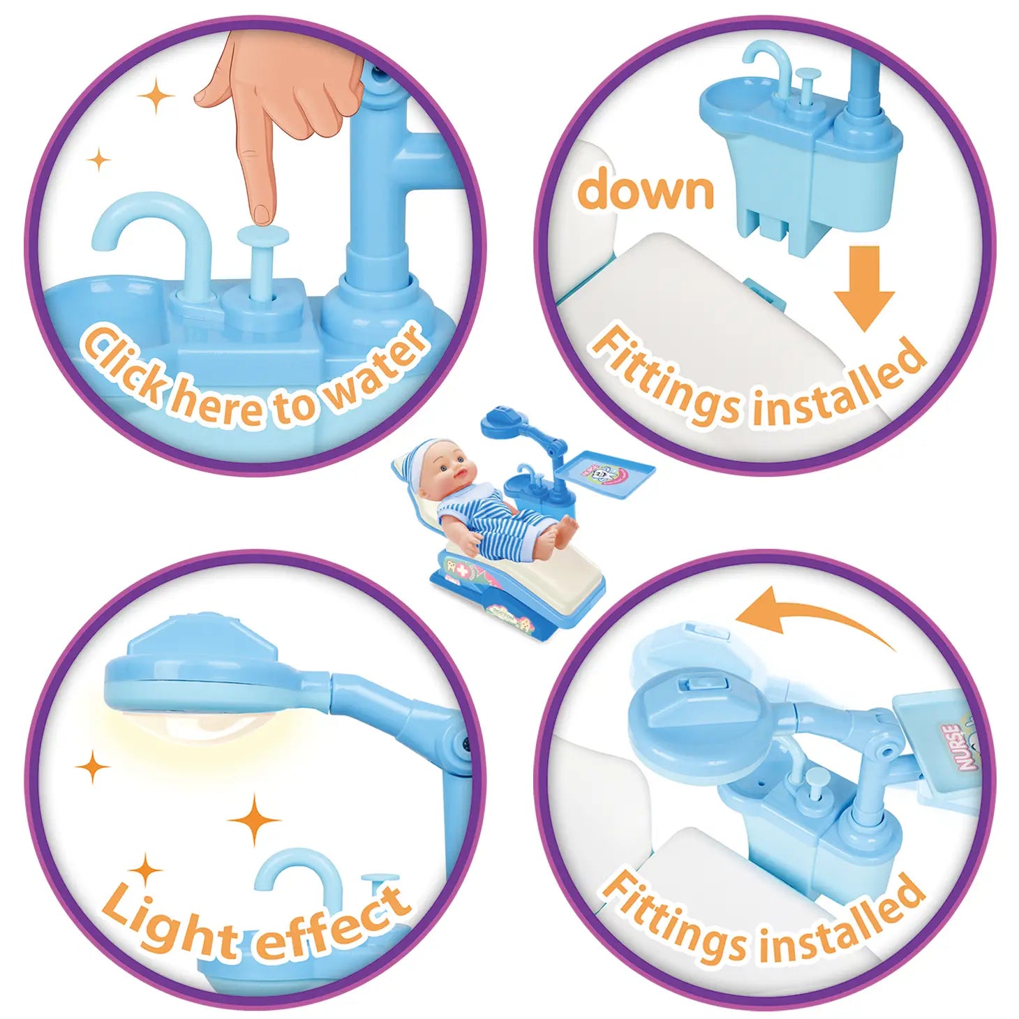 Pretend Doctor Playset: This 33-piece Kid Doctor Pretend Play Set features pretend-to-play medical “tools” such as a stethoscope, blood pressure gauge, a toolbox, dental instruments, doctor’s clipboard, surgical instruments, and more! Great for the dentist, doctor and nurse pretend play activities! Carrying Case: There is a portable doctor’s toolbox to hold all your medical tools, gadgets, and devices. The carrying case/toolbox features a handle at the top for easy transport, and a heart-shaped lock to keep the contents securely inside. Makes Sounds and Lights-Up: The stethoscope produces heart-beating sounds and lights up when used! Makes the experience much more inclusive and dynamic. Dentistry as well: This Kid Doctor Pretend Play Set also comes with dentistry tools. It is a doctor’s set and dentistry set in one!