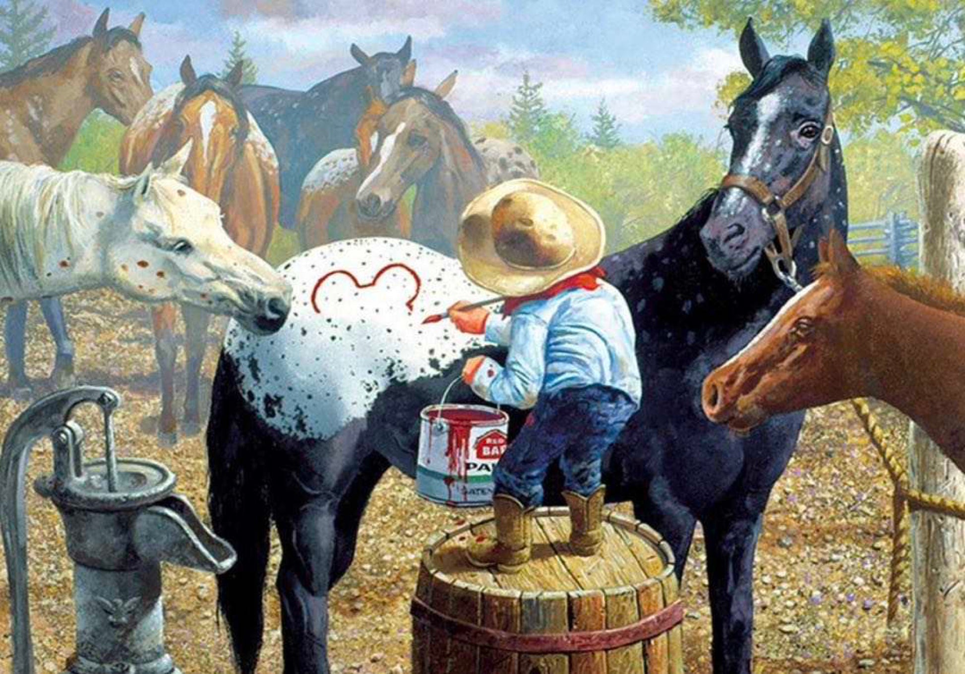 Little boy with horses diamond painting