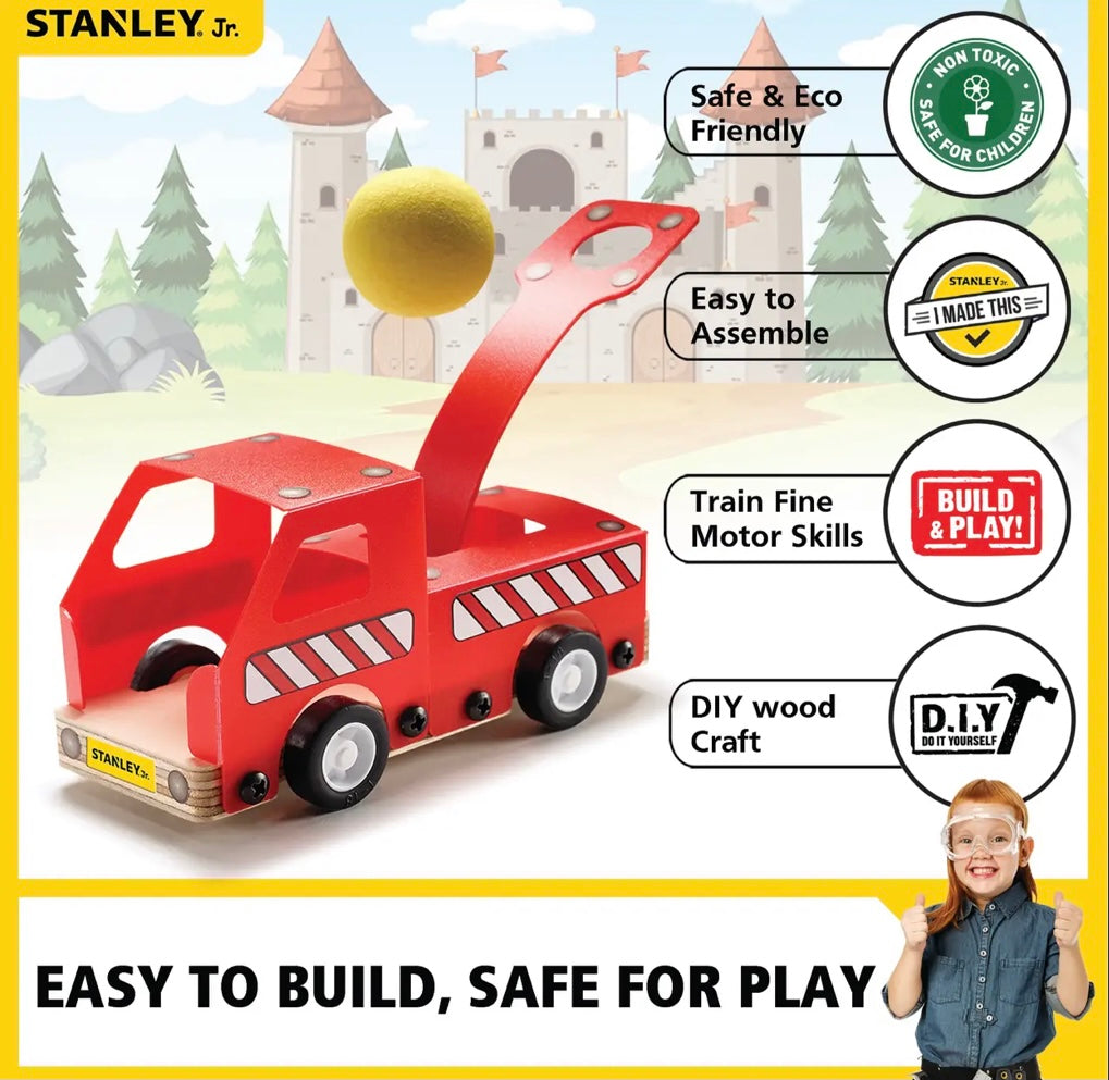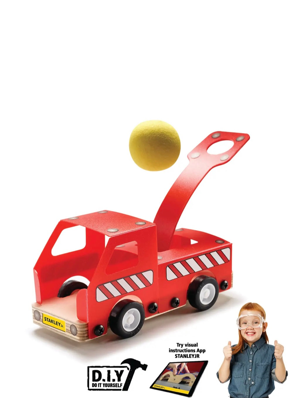 Kit includes pre-cut wood pieces, plastic catapult parts, foam ball, decals and all nails & screws required to assemble model. Build and customize your own working catapult truck with the included decals. A great project for parents and kids to work on together! Finished dimensions: 1.9" x 3.9" x 4.5".