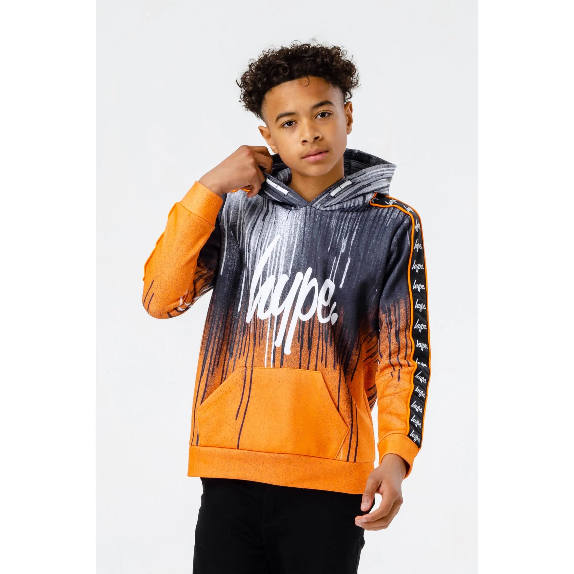 The HYPE. Orange Drips Script Hoodie is your new go-to overlayer. Providing supreme comfort with a fixed hood, kangaroo pocket, and fitted hem and cuffs. Designed in a unisex kids pullover shape in orange featuring an all-over drip inspired print, woven tape with piping, and the iconic HYPE. logo in a contrasting white script. Wear with HYPE. joggers for the ultimate loungewear fit or with jeans for a casual look. Machine washable. Colour Orange
