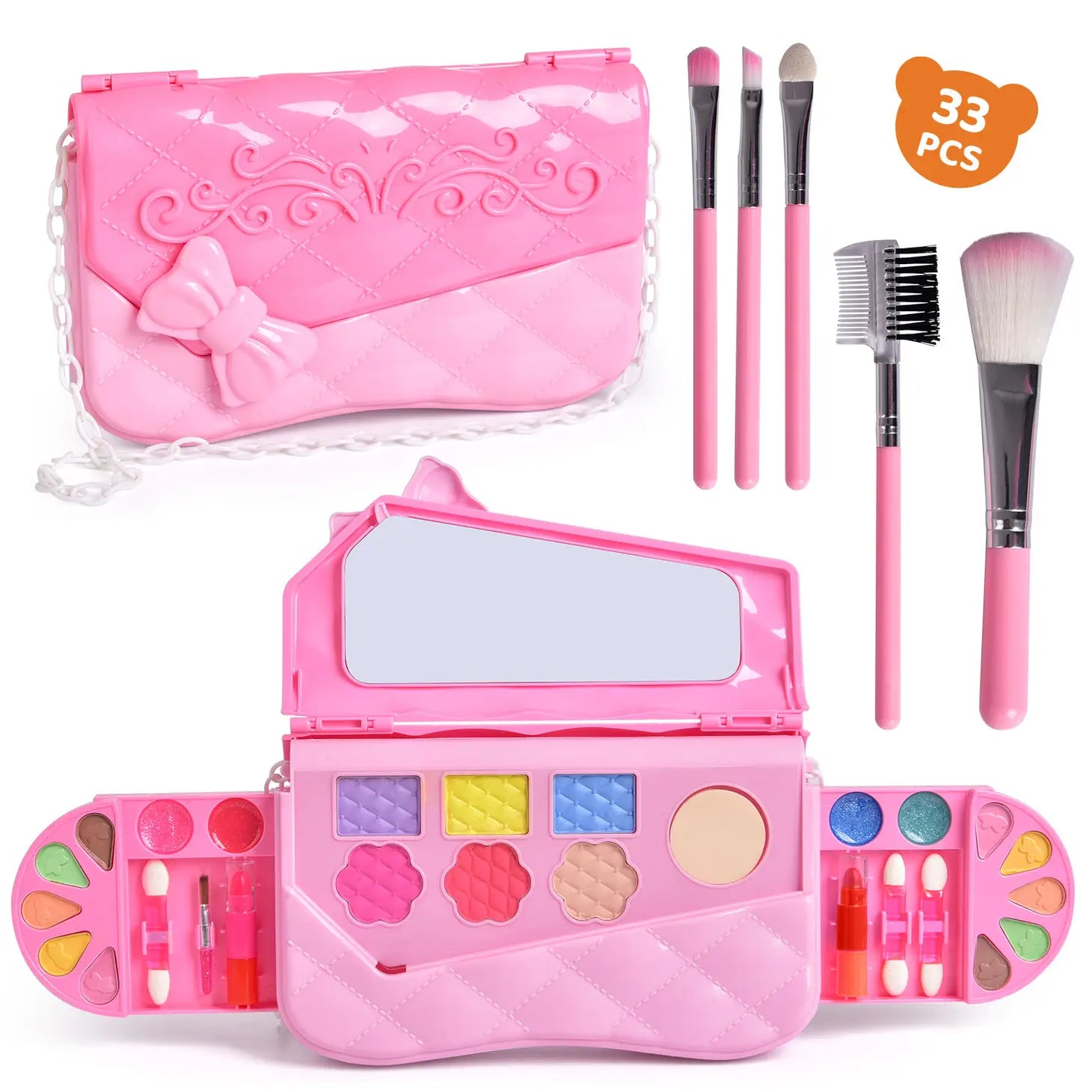 Introducing a 33PC Girls' Makeup Set, designed to inspire creativity and imaginative play! This all-in-one kit is perfect for kids aged 3-12, and is made from non-toxic, skin-friendly materials that meet US toy safety standards (CPSIA & ASTM F-963). Ideal for pretend play, princess parties, and more. 💄Encourage Creativity: Helps improve fine motor skills, imagination, and aesthetic abilities. 💄Perfect Gift: Ideal for birthdays, Christmas, Halloween, and other holidays. 💄Includes: 13 eyeshadows, 3 eyeshadow applicators, 1 powder, 2 blushes, 4 lip glosses, 2 eyeshadow brushes, 1 lash comb, 1 blush brush, 1 lip brush, 2 lipsticks, 1 lip applicator, 1 powder sponge, and 1 mirror.