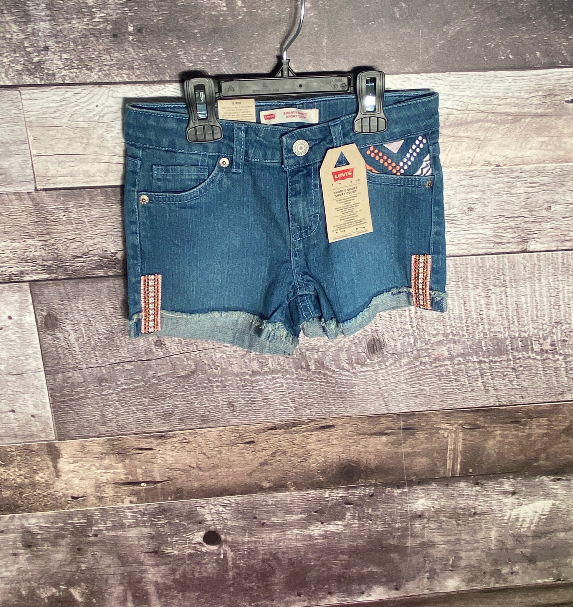 Levi's blue embroidered shorty shorts